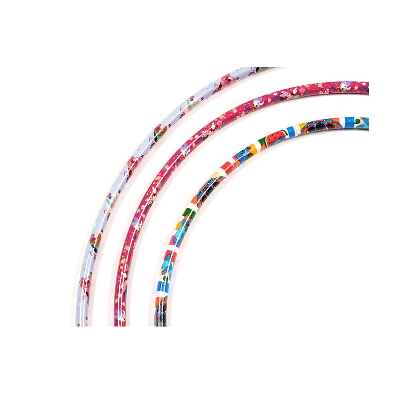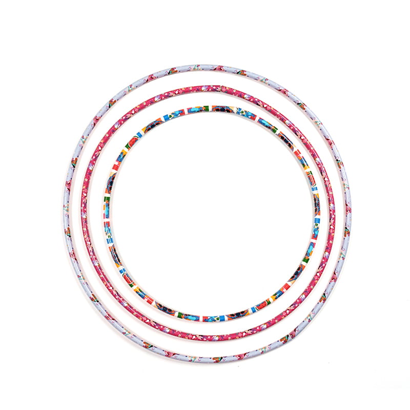 Barevná nálepka z této dětské nálepky Hula Hoop je vyrobena z vybraných PE trubek, která je bezpečná, ekologicky šetrná a robustní. Jeho povrch je vložen barevným tiskovým filmem, s různými vzory a světlými barvami, včetně žluté s modrými, zelenými a červenými vzory, a fialový s barevnými vzory, což je jak módní, tak zajímavé. Tato hula hoop má nejen krásný tvar, ale také vykazuje brilantní vizuální efekty při otáčení, stimuluje zájem dětí o sport, aby mohli vykonávat svá těla a zároveň si užívat dvojité zábavy z vidění a sportů.